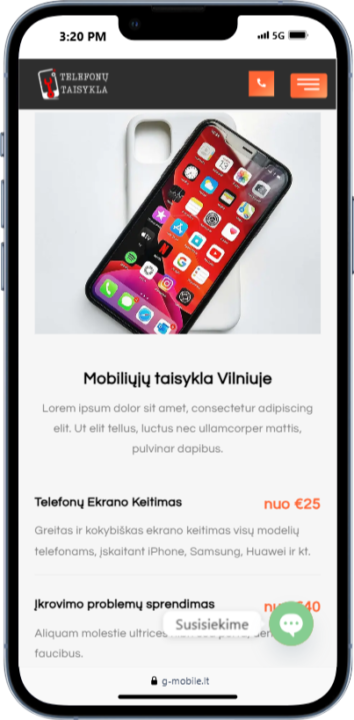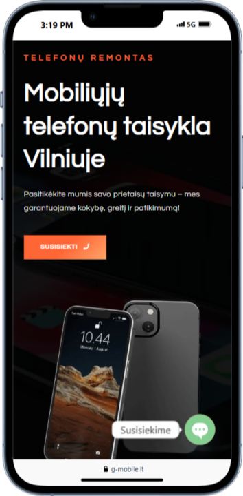 G-Mobile svetainė tapo patikimu įrankiu klientų aptarnavimui ir padėjo sustiprinti jų įvaizdį kaip profesionalių meistrų komandos.