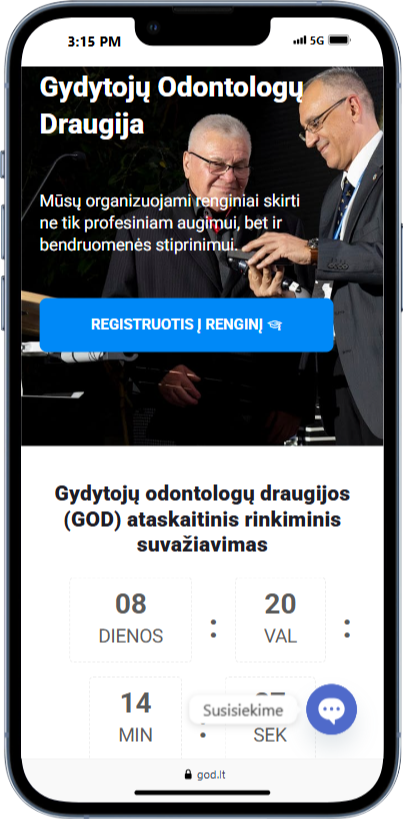 Sukurtas informatyvus ir profesionaliai atrodantis reprezentacinis puslapis, kuris padeda draugijai komunikuoti su savo nariais bei skleisti žinią apie organizuojamus mokymus. Svetainė veikia greitai, puikiai atsinaujina, lengvai tvarkoma administratorių komandos.